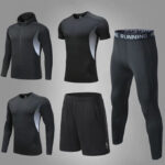 5 Pièces Ensemble Compression Homme Tenue Sport Fitness Vêtement de Sport avec Hoodies Vestes Shirt